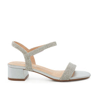 Look stylish and feel comfortable with the Beth-1WT Ankle Strap Open Toe Low Block Heel. Featuring velcro straps and a wide width fit, these shimmery heels are perfect for any occasion.