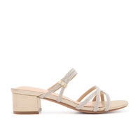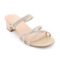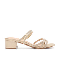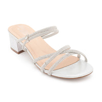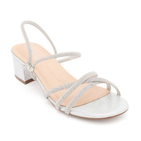 Experience comfort and style with HAZEL-38 Open Toe Low Block Heels. Featuring adjustable straps and cushioned insole support, these shimmer material heels are perfect for any occasion.
