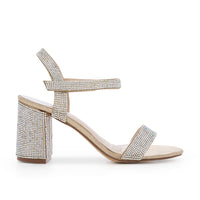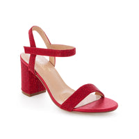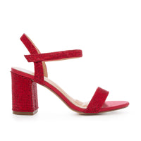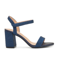 Stay stylish with the Anna-12T Ankle Strap Open Toe Mid Block Heel. Crafted with shimmer material and featuring velcro straps and cushioned insole for added support.