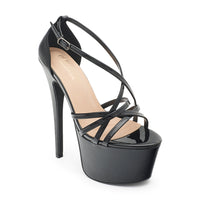 Shop stylish and fashionable platform open toe high stiletto heels from LEEYA-12 in patent leather material. Enjoy adjustable straps and cushioned insole support for extra comfort. Find the perfect pair of shoes for your next outfit today!