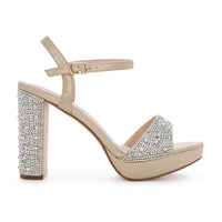 Shop the Peace-10 Platform High Heel in Shimmer material. Enjoy adjustable buckle straps and cushioned insole support for all-day comfort. Buy wholesale now!