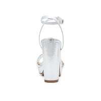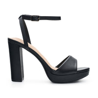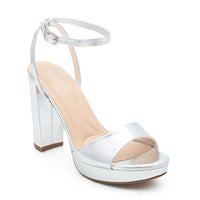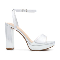 Discover the stylish and comfort of the JANE-36T Ankle Strap Open Toe High Block Heel. These heels are perfect for any event with shimmer material, adjustable buckle straps, and cushioned insole support.