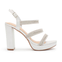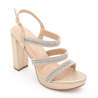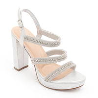 Discover the stylish and comfortable JANE-55 Ankle Strap Open Toe High Block Heel. These heels are perfect for any event with shimmer material, adjustable buckle straps, and cushioned insole support.
