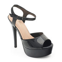 Shop stylish and fashionable platform open toe high stiletto heels from FLORA-72X in patent leather material. Enjoy adjustable straps and cushioned insole support for extra comfort. Find the perfect pair of shoes for your next outfit today!