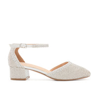 Experience comfort and style with HAZEL-66 Open Toe Low Block Heels. Featuring adjustable straps and cushioned insole support, these shimmer material heels are perfect for any occasion.