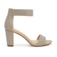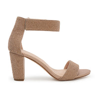 Shop Nicky-4T Cuff Strap Open Toe Low Block Heels at our wholesale footwear store. These shimmer material heels feature velcro straps and cushioned insole support for added comfort. Buy now and get the perfect look for any occasion!